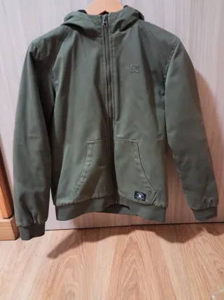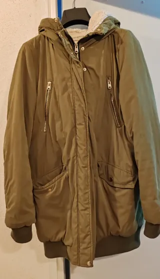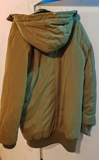 Cazadora de la marca Zara en color verde oliva. Diseño moderno y funcional.talla grande como una s. - Capucha integrada. - Cierre de botones. - Bolsillos frontales.