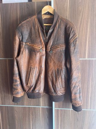 Cazadora bomber de estilo vintage para hombre. Un clásico que nunca pasa de moda. - Diseño bomber. - Acabado desgastado. - Cierre de cremallera. - Increíbles relieves - No encontrarás otra igual