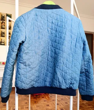 Cazadora vaquera acolchada con un diseño moderno y cómodo. Tipo bomber. - Cierre de corchetes - Bolsillos delanteros con cremallera - Puños y bajo elásticos.