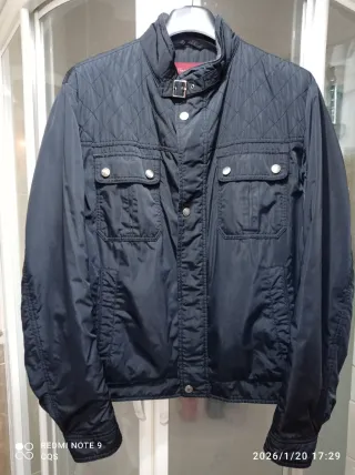 Chaqueta de hombre de la marca Massimo Dutti. - Diseño acolchado en la parte superior. - Cierre de cremallera y botones. - Dos bolsillos en el pecho con botón. - Cuello alto con hebilla.
