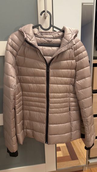 Cazadora acolchada BCBG en tono rose gold. Es ligera y muy estilosa. - Diseño acolchado horizontal. - Cremallera frontal. - Capucha integrada.