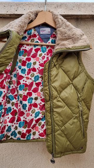 Ideal para niña o joven preciosa cazadora con cuello de pelo y bolsillos de la Talla S para entretiempo. De la calidad de Tommy Hilfiger. En muy buen estado, con un interior floreado muy bonito.