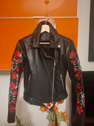 Cazadora con tachuelas plateadas (pinchos) y bordados de flores. Es de Zara, edición limitada. Está nueva, sin etiqueta.