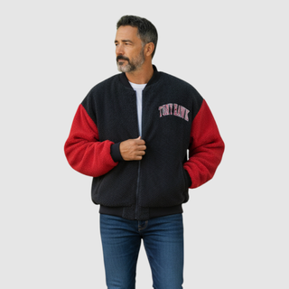 Cazadora estilo bomber con un diseño moderno y detalles cuidados. - Cuello alto con acabado en borreguito. - Cierre de cremallera. - Bolsillos laterales. - Puños y cintura elásticos.
