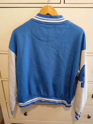 Usada en contadas ocasiones,está en super buen estado,es del estilo de una bomber, muy poco vista por las serigrafías que lleva tanto en la parte delantera como trasera,colores muy combinables para un look muy casual,talla S