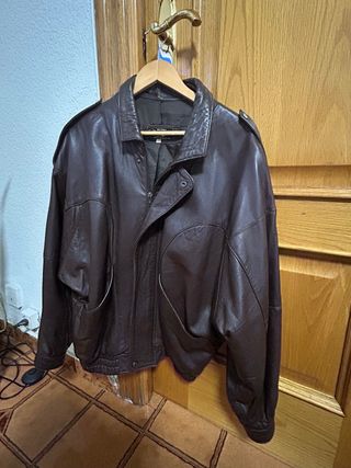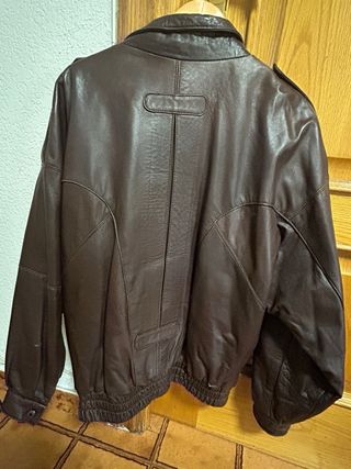 Cazadora vintage estilo bomber confeccionada en piel. - Diseño vintage comprada en 1982. Tipo oversize - Cierre de cremallera. - Bolsillos frontales. - Forro en seda - cazadora usada un par de veces pero tiene dos pequeños enganchones que se pueden ver en las fotos