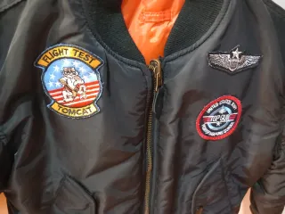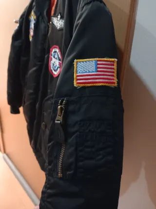 Cazadora estilo bomber de Top Gun, ideal para los más pequeños. TALLA 10 AÑOS. Perfecto estado nunca se usó. Presenta parches temáticos militares del ejército del aire americano US Air force - Parche de la bandera de España en la manga. - Parche Flight Test en el pecho. - Parche AIRBORNE en la manga. - Parche US NAVY en el pecho. - Parche TOP GUN en la manga. Regalo perfecto para estas navidades y reyes magos.