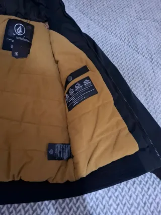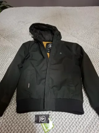 Cazadora infantil de la marca Volcom en color negro. Cuenta con capucha y forro interior. - Cierre de cremallera. - Puños y bajo elásticos. - Bolsillos laterales. TALLA PEQUEÑA. UNA 10 AÑOS