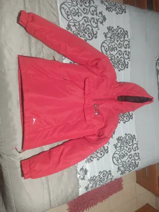Cazadora infantil de color rojo, perfecta para mantener el calor. - Capucha con pelo.desmontable - Cierre de botones. - Bolsillos laterales. Ajuste interior de cintura para que no entre frio Talla 10