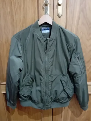 Cazadora estilo bomber en color verde oliva. -Para niño de 9 a 10 años incluidos. - Cierre de cremallera frontal. - Bolsillos laterales con botón. - Bolsillo con cremallera en la manga. - Puños y bajo elásticos.