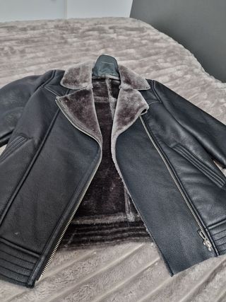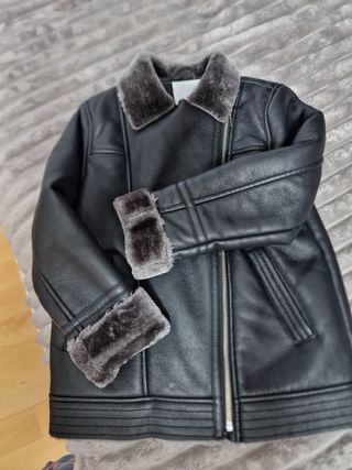 Cazadora negra de polipiel forrada para niño de 8-10 años. Es de Zara, muy calentita.