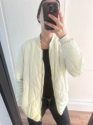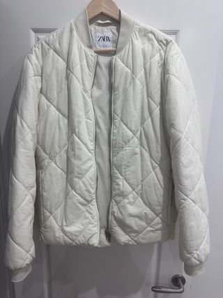Cazadora bomber acolchada de Zara. Color blanco. Talla S