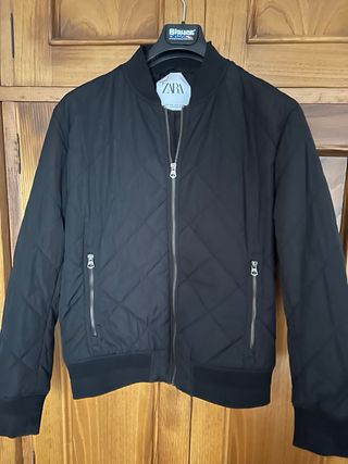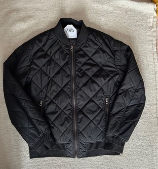 Cazadora bomber de Zara, ideal para un estilo casual. - Diseño acolchado en el interior. - Cuello y puños elásticos. - Cierre de cremallera frontal.