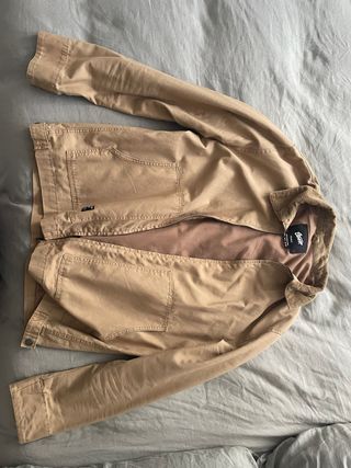 Cazadora de Pull&Bear con cuello de pana. - Color beige. - Cierre de cremallera. - Dos bolsillos delanteros con solapa. - Puños abotonados.