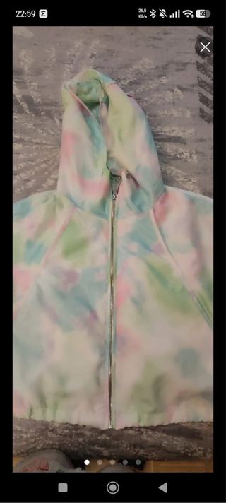 Cazadora acolchada con capucha. forro de florecitas Cierre de cremallera. Bolsillos laterales con cremallera talla M 5 €