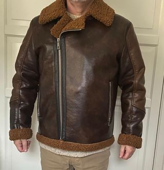 Cazadora tipo aviador de polipiel en color marrón. Se encuentra como nueva. Sada solo una vez. - Diseño de aviador. - Material: Polipiel.