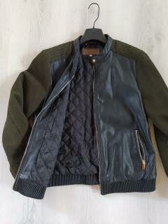 Cazadora estilo bomber de Zara Man. - Diseño con cuerpo verde y mangas negras. - Cierre de cremallera frontal. - Cuello, puños y bajo elásticos.