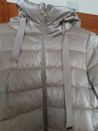 Cazadora acolchada con capucha y cremallera frontal. - Diseño brillante y moderno. - Cordones ajustables en la capucha. - Bolsillos laterales.