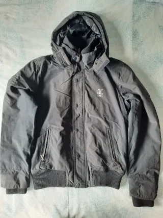 Cazadora estilo bomber para hombre. - Cierre de cremallera y botones a presión. - Bolsillos laterales con cremallera. - Puños y cintura elásticos. - Capucha integrada.