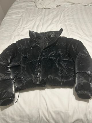 Cazadora corta de acabado brillante. Nueva temporada. - Diseño acolchado. - Cuello alto. - Cierre de cremallera frontal.