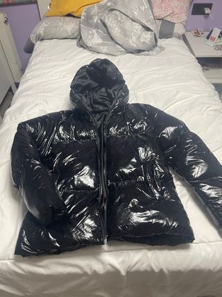 Cazadora acolchada con acabado brillante. - Diseño moderno y llamativo. - Capucha integrada. - Cierre de cremallera frontal.