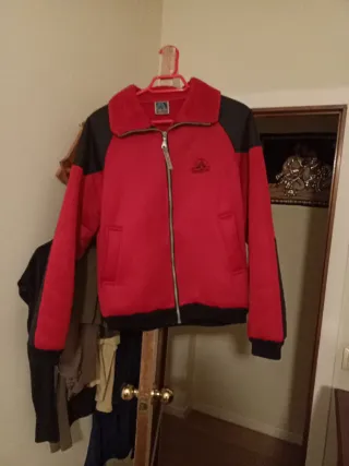 Cazadora vintage de la marca RocNeige, con un diseño moderno y cómodo. - Tejido de neopreno. - Combinación de colores rojo y negro. - Cuello con forro de pelo.