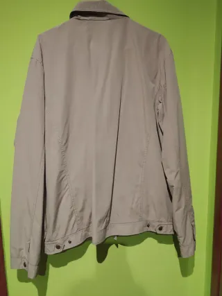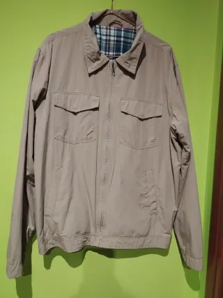 Cazadora en color beige tostado en buen estado. Talla 54/XL. En el tallaje de wallapop la XL corresponde a la 56. Si necesitas medidas, pregúntame. - Cierre de cremallera frontal. - Dos bolsillos de solapa en la parte delantera superior.