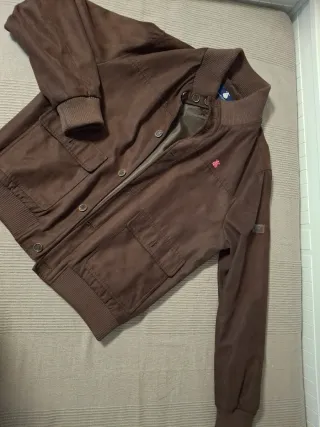 Cazadora estilo bomber en color marrón. - Talla L. - Cierre de cremallera frontal. - Dos bolsillos laterales.