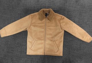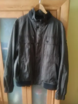 Cazadora bomber con un elegante efecto ante. Con forro interior qie abriga. Sin usar. - Cierre de cremallera. - Bolsillos con cremallera. - Puños y bajo elásticos. Talla M grande, vale para mas de 175 cm y 75 kg. No negociable. Zona Pitis.