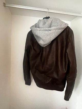 Cazadora de efecto piel con capucha integrada (se puede quitar) - Diseño moderno y versátil. - Cierre de cremallera frontal. - Bolsillos laterales. - Puños y bajo elásticos.