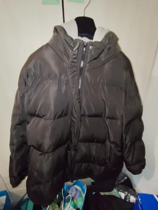 Cazadora de invierno con capucha ,acolchada , azul marino, bolsillos laterales amplios de cremallera y dentro uno con cremallera y otro de botón, tiene una mancha no sé si pasa , apenas visible , última foto , muchísima utilidad, mirar más cositas en mi perfil.....Regalo tenis usados .....