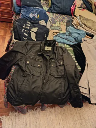 Cazadora Geox en buen estado, talla 54. - Diseño moderno con múltiples bolsillos con cremallera. - Detalle de parche en la manga. - Cuello camisero. Le falta la parte de dentro que cierra por el medio. Vendo via wallapop y entrego en mano. El abrigo irá en una caja bien envuelta con papel burbuja, para que nose deteriore en absoluto.