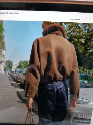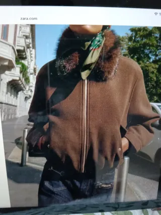 Chaqueta bomber acolchada de color verde oliva, con capucha forrada en pelo sintético marrón oscuro. Es una prenda abrigada y cómoda, ideal para los días más frescos. - Diseño bomber clásico. - Acolchado con diseño de rombos. - Cierre de cremallera. - Puños y bajo elásticos. He tenido que poner zara..porque sino no me dejaba subirlo..pero es de una tienda local