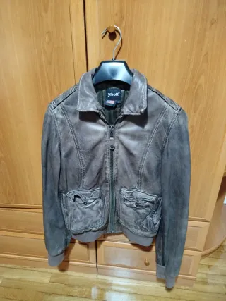Cazadora de piel de la marca Mango. Aunque en la etiqueta aparece XL, talla muy pequeña, es una M justa - Diseño tipo bomber. - Cuello y puños de canalé. - Cierre de cremallera. - Bolsillos con solapa y botón a presión.