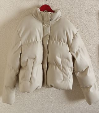Cazadora acolchada de color crema, prácticamente nueva. Cierre con cremallera y botones. - Diseño moderno y acolchado. - Cierre de botones a presión y cremallera - Bolsillos frontales. - Cuello alto.