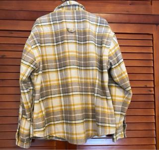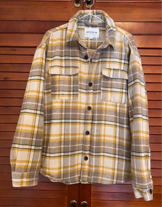 Cazadora de cuadros de la marca Review. - Diseño a cuadros en tonos beige y amarillo. - Cierre con botones. - Dos bolsillos en el pecho.