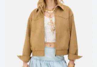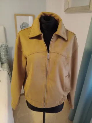 Bonita Cazadora de la marca Primark de antelina en color Camel. De la Coleccion Rita Oria para Primark - Diseño moderno y versátil. - Cierre de cremallera. - Bolsillos frontales.