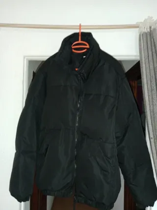 Cazadora negra de efecto piel, en buen estado. - Diseño acolchado. - marca; inside - Cierre de botones a presión.y cremallera
