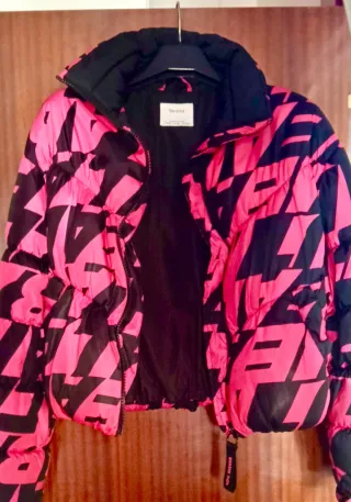 Cazadora urbana Bershka Rosa & Negro en estado impecable, prácticamente como nuevo. Acolchado de gran calidad, ligero y cómodo, no pesa y sienta genial. Talla M Cremallera en perfecto estado. 📌 Entrega rápida / envío disponible. - Cierre de cremallera. - Cuello redondo. - Puños elásticos.
