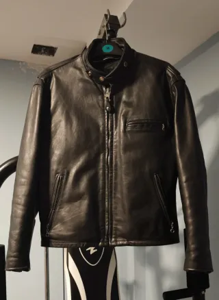 Cazadora de cuero de la marca Schott. Cuello redondo, piel gruesa y de muy buena calidad. Muy cuidada Venta o cambio por talla 40 enidmo estado. - Diseño clásico. - Cremallera frontal. - Bolsillo en el pecho. Se vende tal y como se muestra en las fotos.