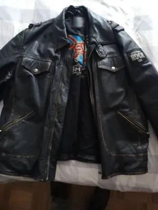 Cazadora de cuero negra de la marca Springfield, Varias prendas,camisas,un pantalon sin estrenar,cazadora negra Jack & Jones, preguntar precios de las prendas,sólo pongo el precio d la chaqueta de cuero - Diseño moderno y versátil. - Cierre de cremallera frontal. - Bolsillo con cremallera en el pecho.