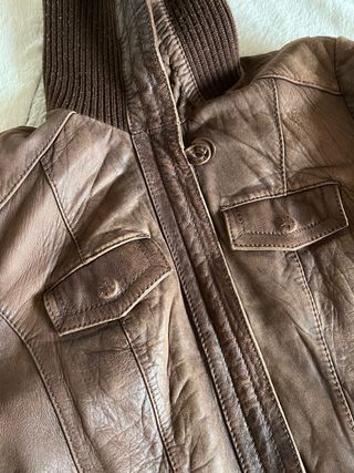 Chaqueta de cuero de color marrón. Esta Nueva - Cierre de cremallera frontal. - Bolsillos con cremallera en el pecho. - Puños y cintura elásticos. Visita mi perfil. Hay mas cazadoras y ropa de hombre NUEVA de varias Marcas a muy buen precio.