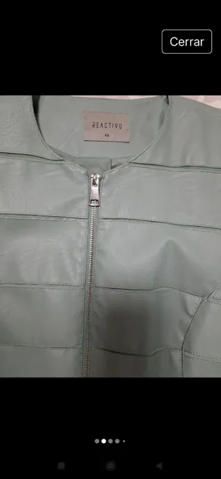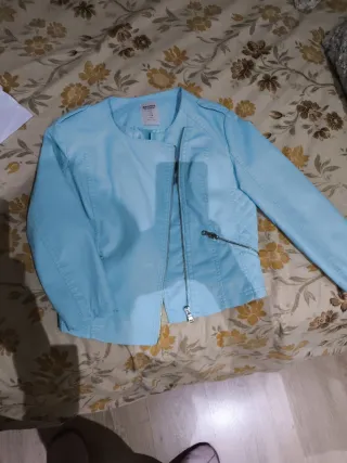 Cazadora de cuero con un diseño moderno y detalles acolchados en los hombros. - Cierre de cremallera frontal. - Bolsillo con cremallera en el pecho. - Dos bolsillos laterales con cremallera. - Cuello mao. Está totalmente nueva la he usado usado 2 veces