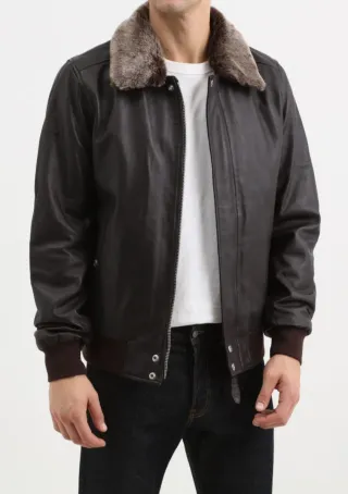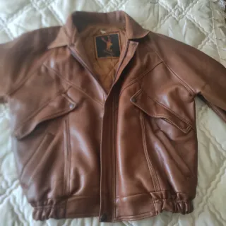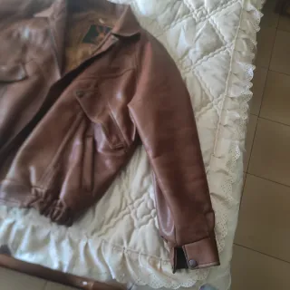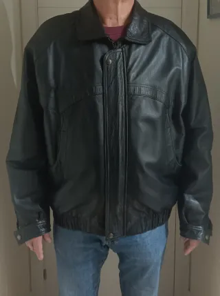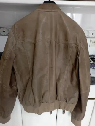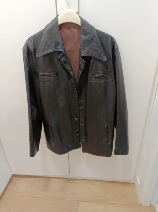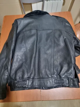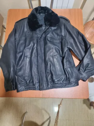 Cazadora de cuero para hombre con un diseño clásico y elegante. Perfecta para un estilo casual o más arreglado. - Cuello con forro de borreguito desmontable. - Cierre de cremallera frontal. - Dos bolsillos en el pecho con botón. - Dos bolsillos laterales. - Bolsillo interior - Puños ajustables con botón. -Mide 74 CMS de larga x 52 de hombro Hago envíos