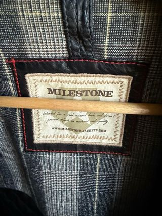 Cazadora estilo biker de la marca Milestone, ideal para hombre. Se encuentra en perfecto estado. comprado nuevo 240€ - Diseño clásico. - Cierre de cremallera frontal. - Bolsillos laterales con cremallera. - Cuello con solapas. - Forro interior a cuadros