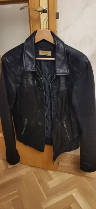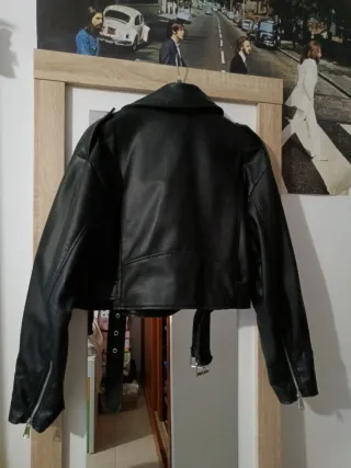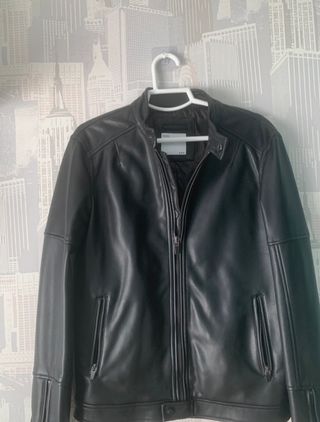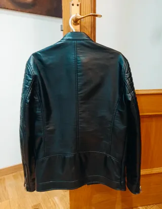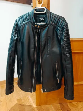 Se vende cazadora de cuero negra, talla S-38, unisex, de Zara. Está prácticamente nueva. Preferiblemente venta en persona. Precio no negociable.