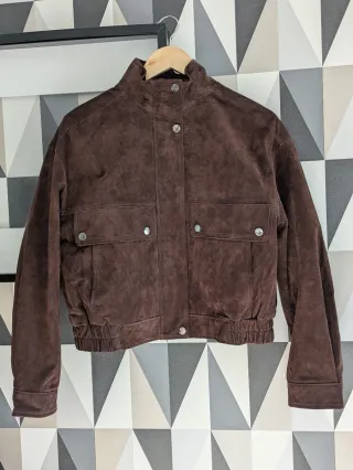 Cazadora de cuerob(piel auténtica ) de la marca Mango. - Diseño moderno y elegante. - Cuello con acabado acanalado. - Bolsillos frontales con solapa. - Puños y bajo acanalados.