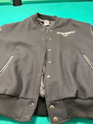 Chaqueta original Bomber Harley- Davidson New York Café • Comprada en EEUU • Modelo tipo bomber con cuerpo como de lana y mangas de cuero negro • Interior acolchado con forro de rombos y etiqueta Star Gear (Paterson, N.J.) • Talla XL • Estado: Excelente. Nunca usada. • Bordados: - En el pecho: Harley-Davidson New York Café - En la manga: Ride Free Una prenda de colección ideal para amantes de Harley, moda vintage o estilo motero clásico  Envío por InPost #harleydavidson #vintagejacket #chaquetavintage #harleydavidsoncafe #ridatron Hhamhar Hasthoriarlat Actualizar producto