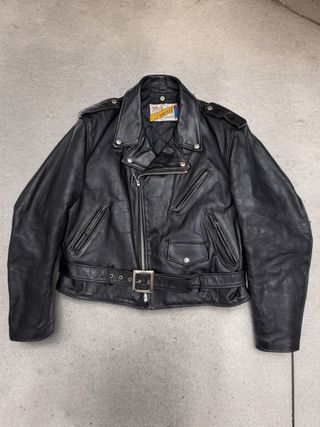 Cazadora de cuero vintage Perfecto by Schott modelo 618J, que es la versión para el mercado francés del modelo 618. Es exactamente igual. El cuero es resistente y grueso. Es de los años 90. 📝 Estado: 7/10 👉 En general esta en muy buen estado, solo tiene algunas señales de uso y las típicas arrugas. (Ver fotos) 📐 Medidas en las fotos ✅ Talla: 46 (USA) Equivale a una XL (ajuste ceñido ) o L (ajuste más holgado) en tallaje europeo. Se recomienda para personas de entre 1,75 m y 1,85 m de altura y un peso de 82–95 kg, con complexión media, atlética o robusta. (👁️ COMPROBAR MEDIDAS PARA ASEGURAR 📐)