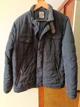 Cazadora de hombre de la marca Dos Galgos. - Diseño acolchado. - Cierre de cremallera. - Bolsillos frontales con botón. - Detalle de cuero en cuello y puños.